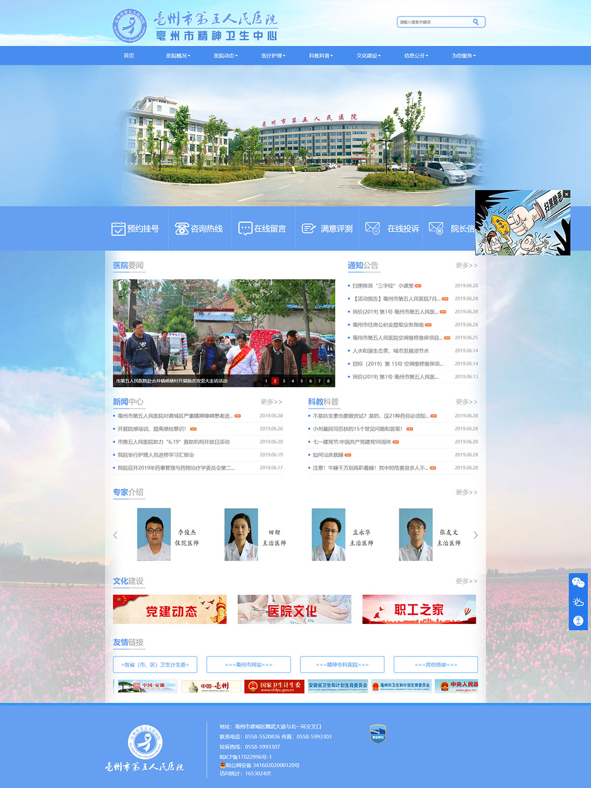 亳州市第五人民醫(yī)院是按照二級(jí)精神??茦?biāo)準(zhǔn)設(shè)置的醫(yī)院,也是全市唯一一家精神??乒⑨t(yī)院。醫(yī)院是2011年中央投資項(xiàng)目,項(xiàng)目總投資5100萬(wàn)元,其中中央投資2700萬(wàn)元,地方配套2400萬(wàn)元,選址位于亳州市譙城區(qū)湯陵街道,北一環(huán)北側(cè)、魏武大道延伸段西側(cè)。占地面積30畝,建筑面積2.4萬(wàn)平方米,設(shè)置床位420張,建設(shè)門診樓4層、住院樓6層、行政樓4層,2013年5月開(kāi)工建設(shè),2016年5月建成投入使用。